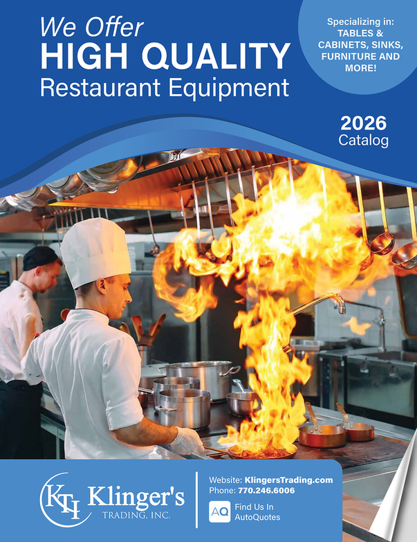 We OfferHIGH QUALITYSpecializing in:TABLES &CABINETS, SINKS,FURNITURE ANDMORE!Restaurant Equipment2026CatalogWebsite: KlingersTrading.comPhone: 770.246.6006Find Us InAutoQuotes
